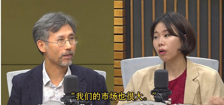 听到这里,女主持人还是不甘心地说了句:“我们韩国的市场也很大啊”,不过专家并没有接这个话茬,韩国的市场有多大,内行人士还是比较清楚的。