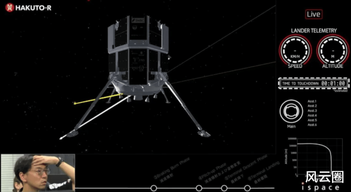 然而,就在离预定着陆时间只剩大约1分钟的时候,直播画面上的关键数据——着陆器的速度和高度突然消失!